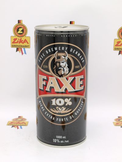 Faxe das beliebte Bier aus Dänemark in der 1L Dose. Dieses Starkbier ist mit Vorsicht zu genießen da es einen Alkoholgehalt von 10% hat.