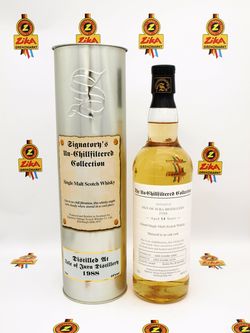 Eine Abfüllung von Signatory. Abgefüllt wurde ein 14-jähriger Single Malt von der Isle of Jura Distillery. Die Whiskys von Isle of Jura sind im Gegensatz zu den Islay Whiskys eher mild, haben jedoch auch ein maritimes Aroma. Abgefüllt wurde ein einzelnes Fass auf 382 Flaschen.